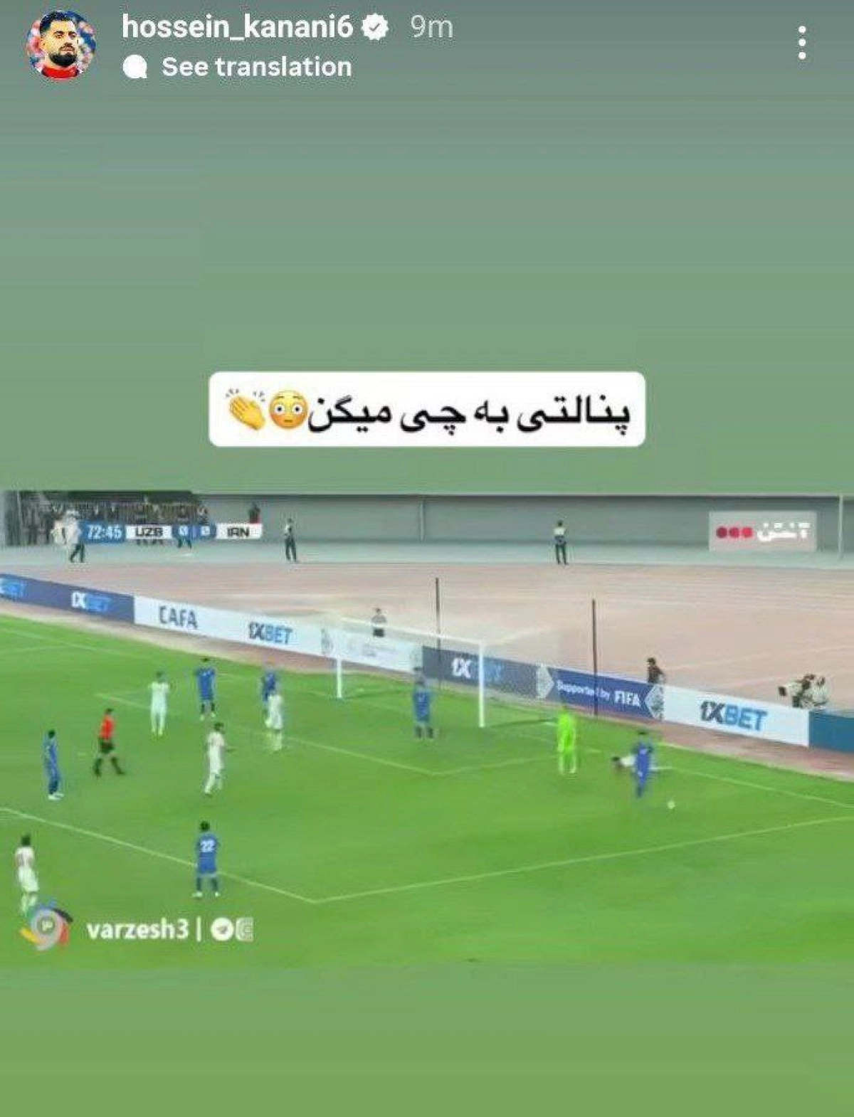حسین کنعانی بعد از پایان این بازی با انتشار صحنهای مشکوک از برخورد مدافع حریف روی او که در ابتدا توسط داور پنالتی تشخیص داده شد و نهایتاً توسط VAR رد شد، با لحن کنایه آمیز نوشت: «پنالتی به چه چیزی میگویند؟»