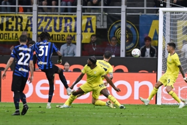در حالی که نیمه اول به لحظات پایانی خود نزدیک می‌شد و به نظر می‌رسید بازی با تساوی بدون گل به پایان برسد، اینتر در دقیقه 45+2 به گل رسید. کرنر هاکان چالهان‌اوغلو در محوطه جریمه لاتزیو با ضربه دی‌مارکو همراه شد که توسط مدافعان بلاک شد، اما توپ به یانیک بیسک رسید. این مدافع آلمانی با کنترلی سریع و ضربه‌ای دقیق، توپ را به گوشه بالای چپ دروازه مانداس فرستاد و اینتر را 1-0 پیش انداخت.