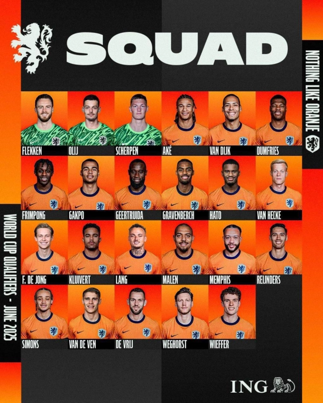 لیست تیم ملی هلند برای مقدماتی جامجهانی ۲۰۲۶