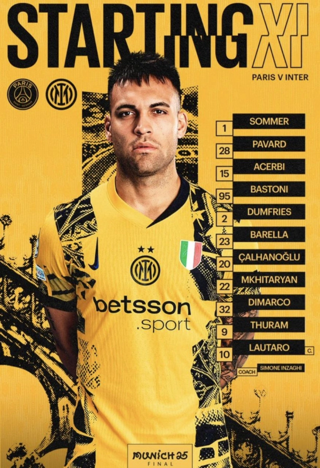 ترکیب رسمی اینتر: یان زومر، فرانچسکو آچربی، بنجامین پاوارد، هاکان چالهان اوغلو، نیکولو بارلا، هنریک مخیتاریان، فدریکو دیمارکو، دنزل دامفریس، لائوتارو مارتینز و مارکوس تورام
