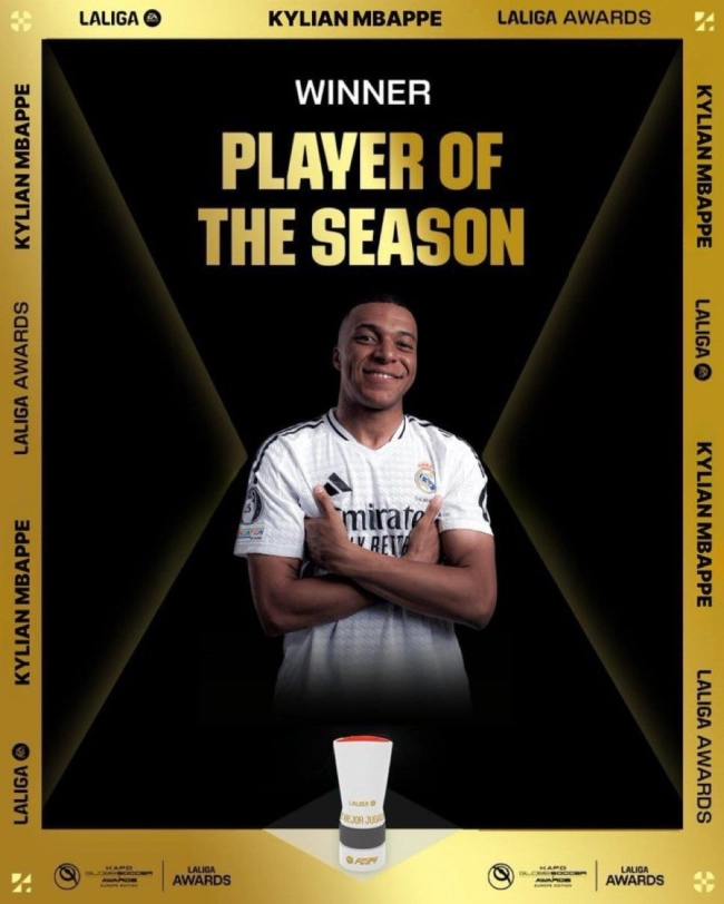 امباپه که تابستان گذشته به عنوان بازیکن آزاد از پاری سن ژرمن راهی رئال مادرید شد، در نخستین فصل حضورش در فوتبال اسپانیا، علیرغم ناکامی در کسب جام‌های تیمی، عملکرد فردی خیره‌کننده‌ای داشت. او پیش از این نیز عنوان بهترین بازیکن فصل رئال مادرید را به دست آورده بود.