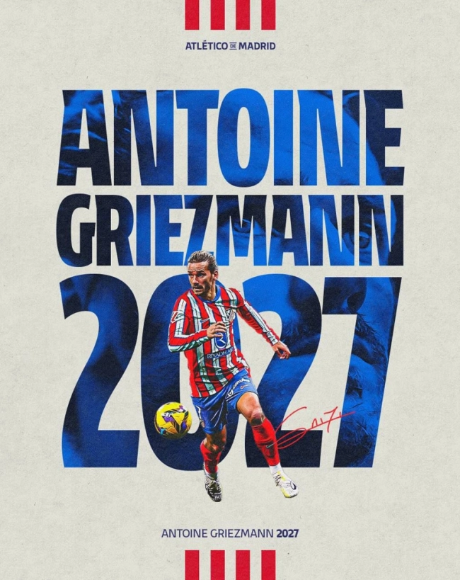 دقایقی قبل اتلتیکو مادرید رسما از تمدید قرارداد آنتوان گریزمان تا سال ۲۰۲۷ خبر داد.
