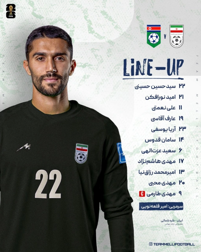 امیر قلعهنویی ترکیب ایران را برای این بازی به شرح زیر اعلام کرد: