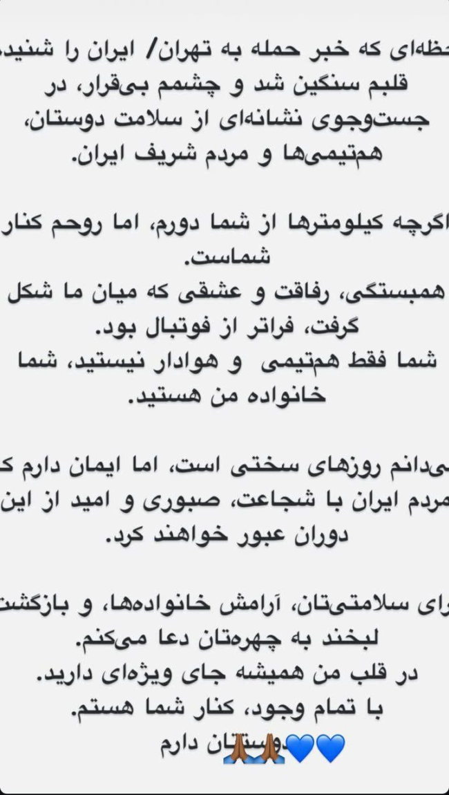 دیدیه اندونگ، بازیکن خارجی تیم استقلال، با انتشار پیامی در اینستاگرام به حملات اخیر رژیم صهیونیستی علیه ایران واکنش نشان داد و از مردم ایران حمایت کرد.