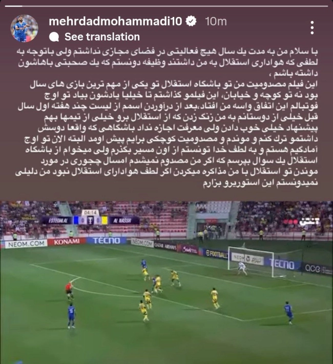 استوری تند مهرداد محمدی برای مدیران استقلال + عکس