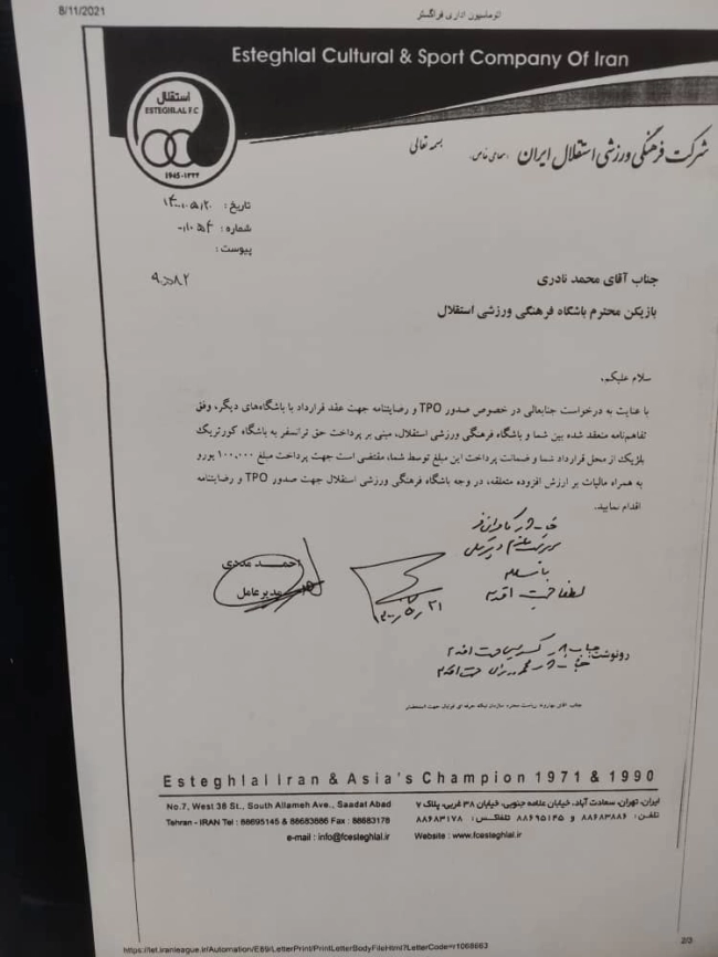 تیم بلژیکی به دنبال غرامت ۱۱۰ هزار یورویی از استقلال در پرونده محمد نادری + عکس