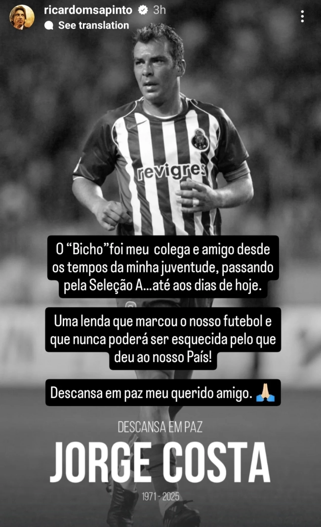 ریکاردو ساپینتو سرمربی باشگاه استقلال به درگذشت ناگهانی ژرژ کاستا همبازی سابقش در تیم ملی پرتغال واکنش نشان داد.