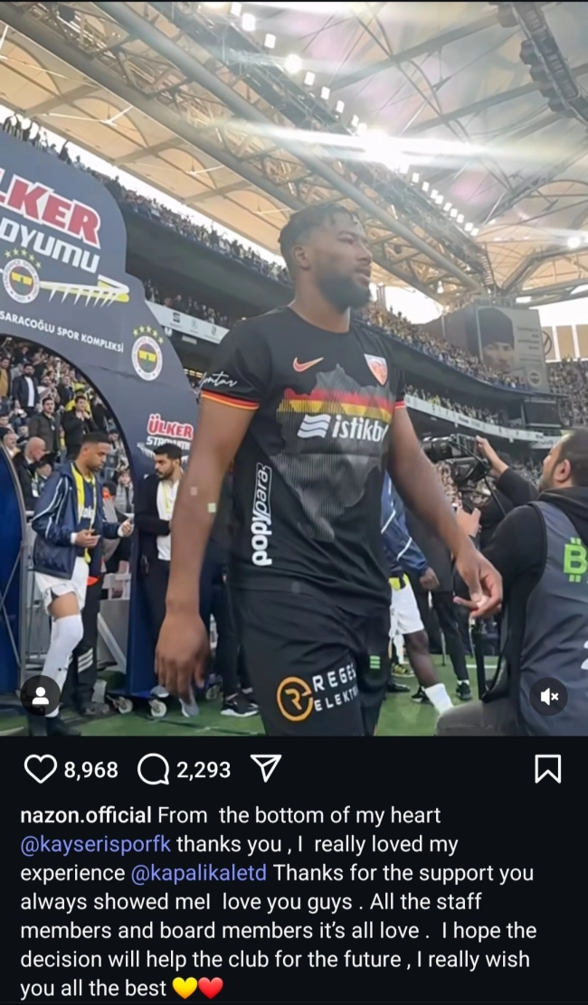 در حالی که هواداران استقلال در انتظار ورود داکنز نازون، خرید جدید تیمشان هستند، این بازیکن با انتشار یک پست اینستاگرامی احساسی، از باشگاه کایسریاسپور ترکیه و هواداران پرشور این تیم خداحافظی کرد.