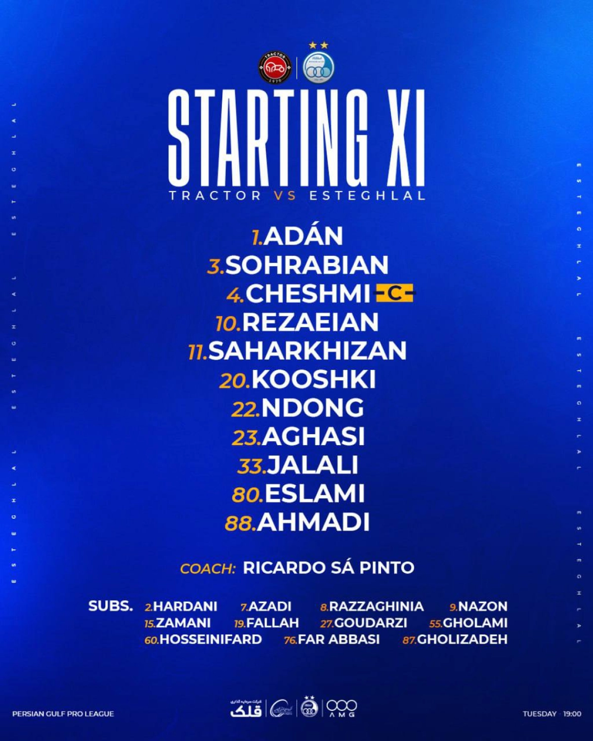 به گزارش سایت رسمی فوتبال برتر ؛ لیست بازیکنان استقلال برای جدال با تراکتور اعلام شده است.