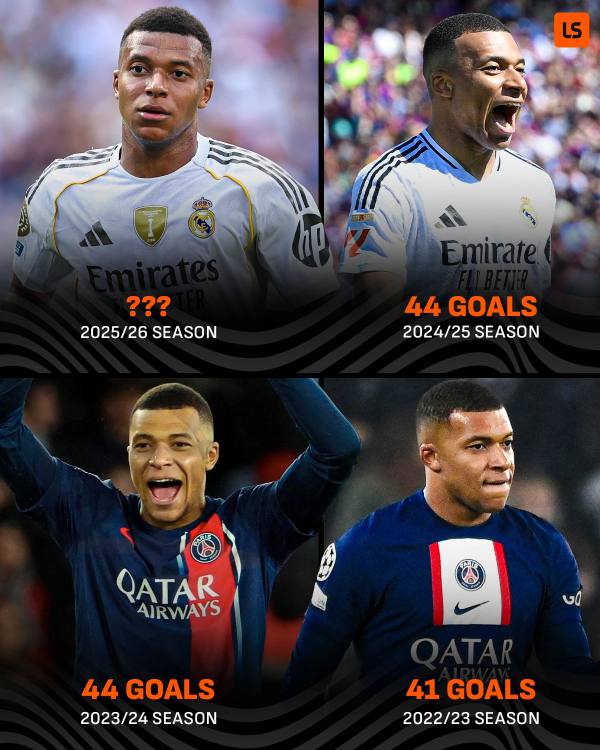 امباپه که در اولین فصل حضور خود در فوتبال اسپانیا آقای گل لیگ شد، به دنبال این است تا برای چهارمین فصل متوالی، از رکورد ۴۰ گل زده در یک فصل عبور کند.