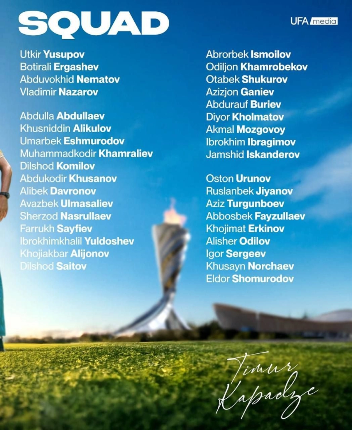 بر اساس اعلام رسمی فدراسیون فوتبال ازبکستان، اوتکیر یوسوپوف، دروازه‌بان تیم فولاد خوزستان، عادل‌جان خامروبکوف، هافبک تیم تراکتور تبریز، و اوستون اورونوف، وینگر تیم پرسپولیس تهران، به اردوی تیم ملی این کشور دعوت شده‌اند. این سه بازیکن، در فصل جاری رقابت‌های لیگ برتر ایران، عملکرد قابل قبولی از خود به نمایش گذاشته‌اند و توانسته‌اند نظر مثبت کادر فنی تیم ملی ازبکستان را جلب کنند.
