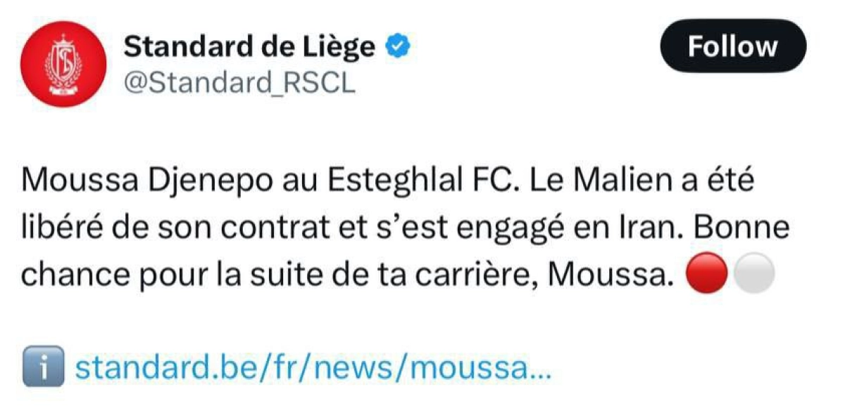 به گزارش سایت رسمی فوتبال برتر؛ باشگاه استانداردلیژ بلژیک، با انتشار بیانیهای رسمی، جزئیات مهمی را درباره انتقال موسی جنپو، وینگر تازه به خدمت گرفته شده استقلال، فاش کرد.