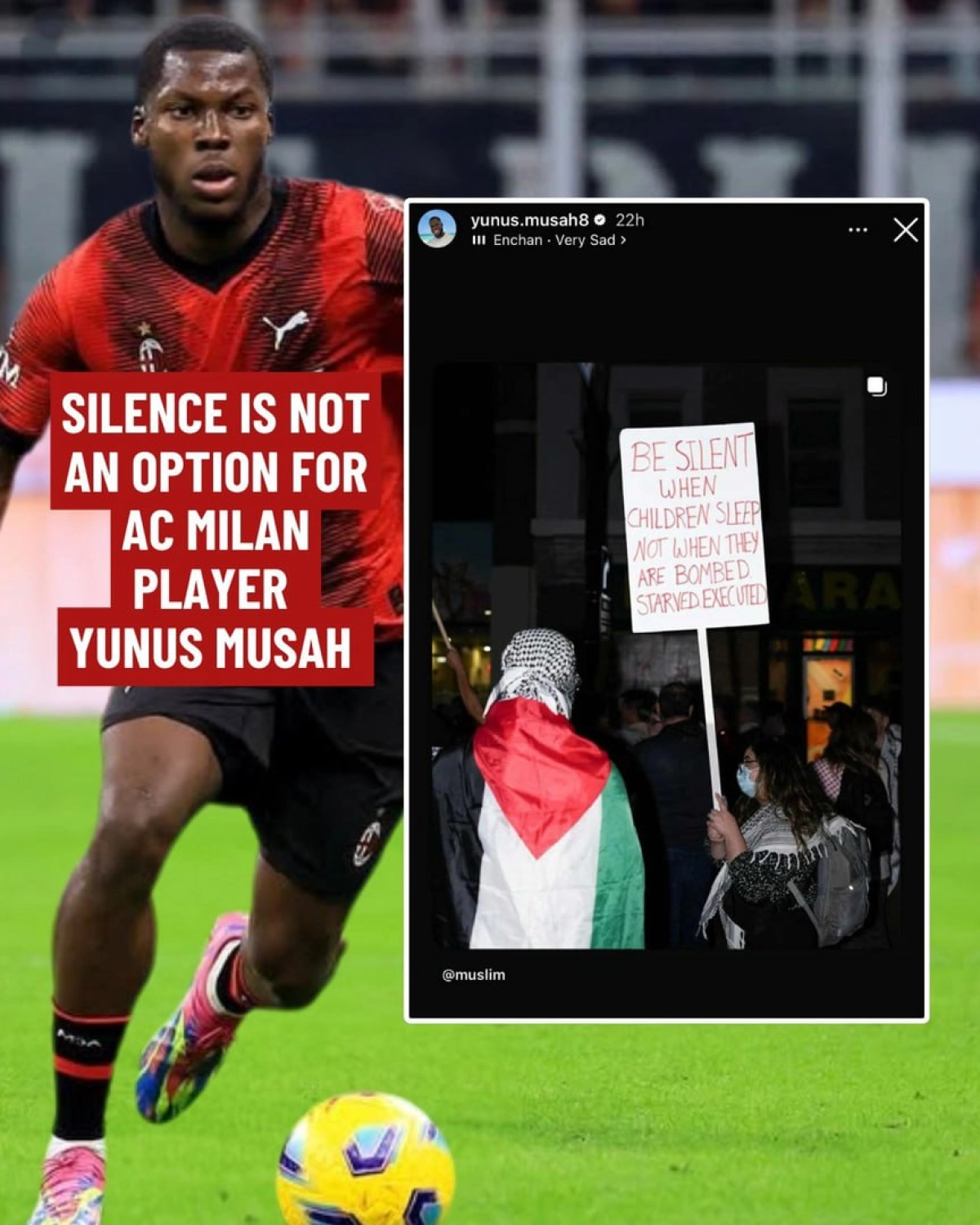 فریاد اعتراض هافبک مسلمان و آمریکایی میلان علیه اسرائیلیها + عکس