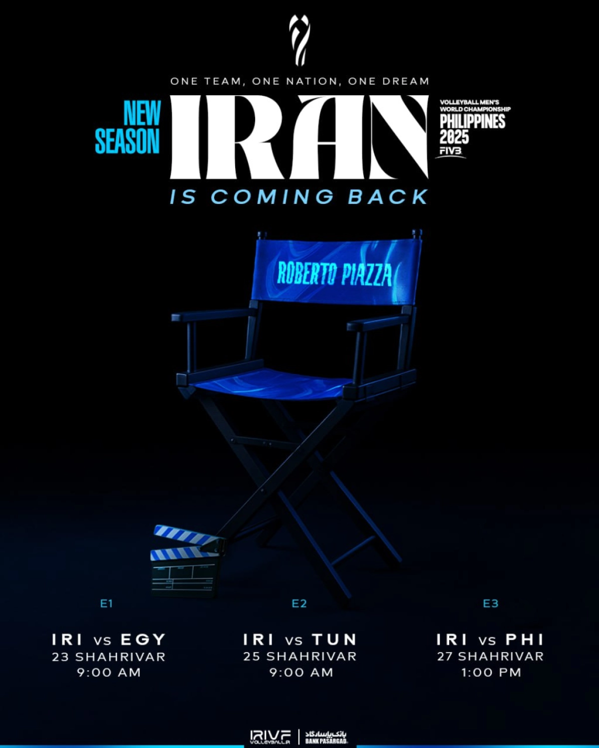 نکته قابل توجه در این پوستر، روبرتو پیاتزا، سرمربی تیم ملی والیبال، است که در نقش یک کارگردان سینما به تصویر کشیده شده است. این ایده خلاقانه با شعار «صدا، دوربین، حرکت!»، تیم ملی والیبال را به مثابه یک اثر سینمایی مهیج و پیازا را به عنوان سکان‌دار این پروژه بزرگ ورزشی معرفی می‌کند.