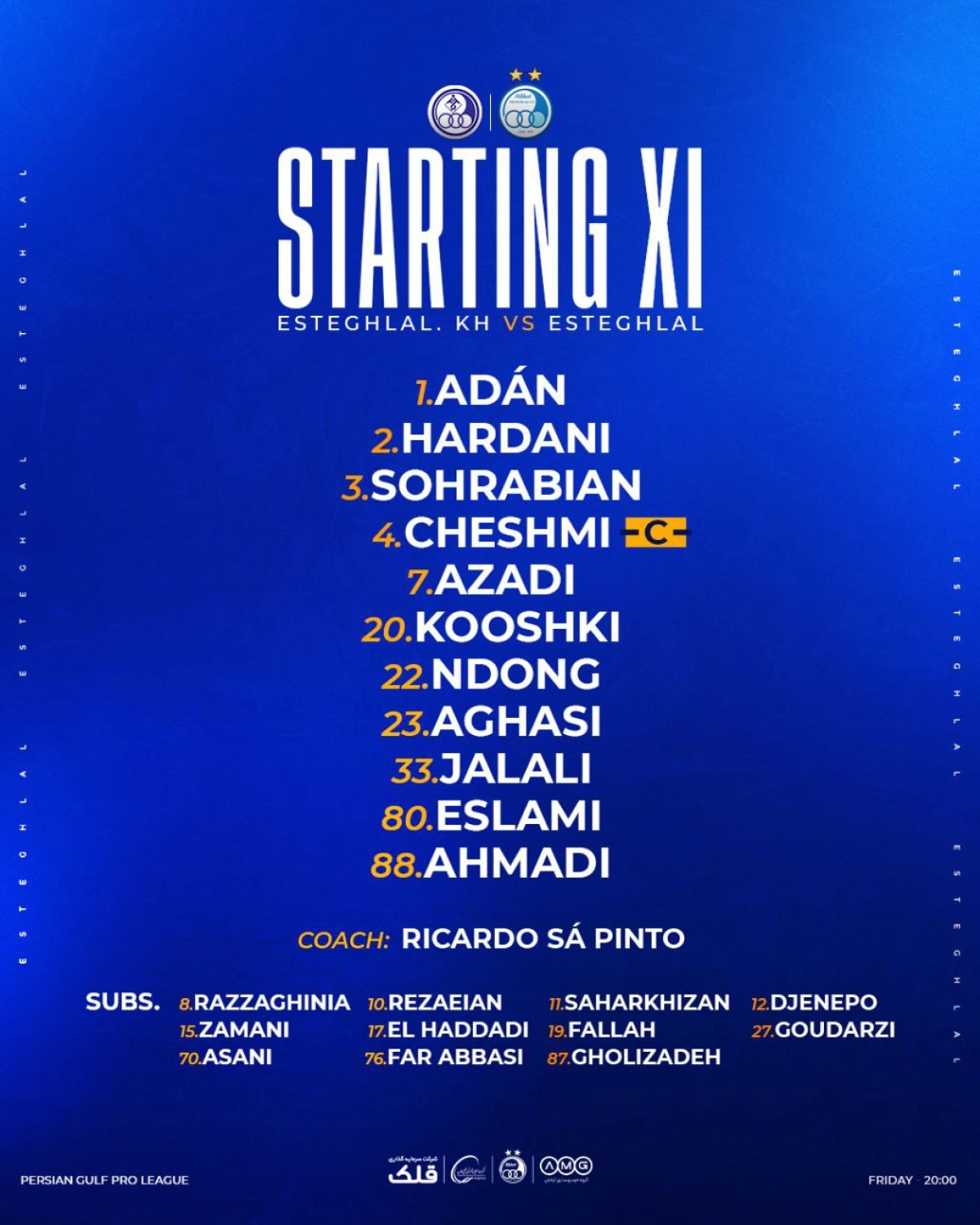نکته جالب این ترکیب، غیبت رامین رضاییان در ترکیب اصلی به دلیل خستگی ناشی از حضور در کافا است. ضمن اینکه داکنز نازون جایی در لیست ۱۸ نفره استقلال ندارد و یاسر آسانی و موسی جنپو نیز روی نیمکت این تیم قرار گرفتهاند.