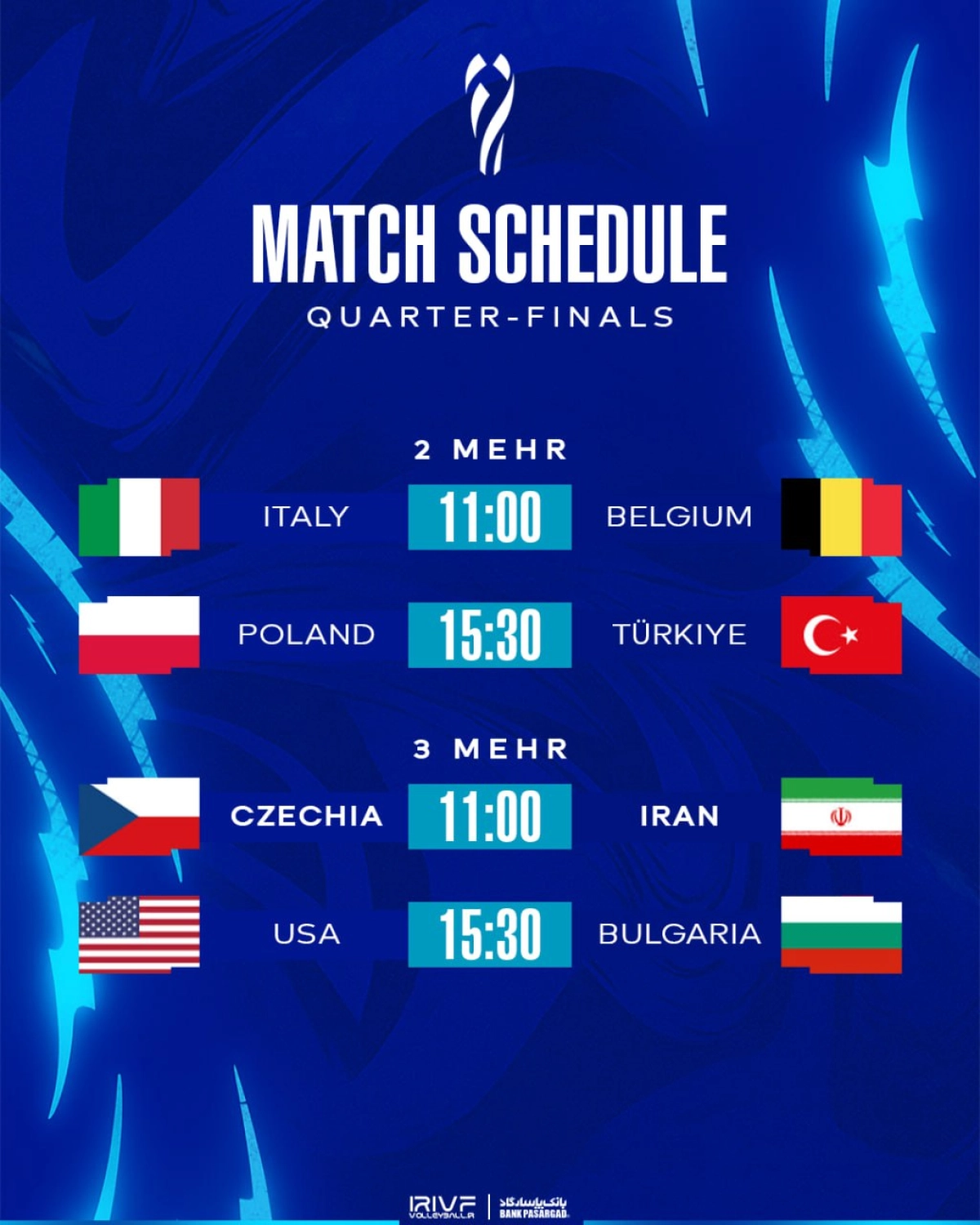 برنامه کامل یکچهارم نهایی والیبال مردان جهان؛ ایران مقابل چک