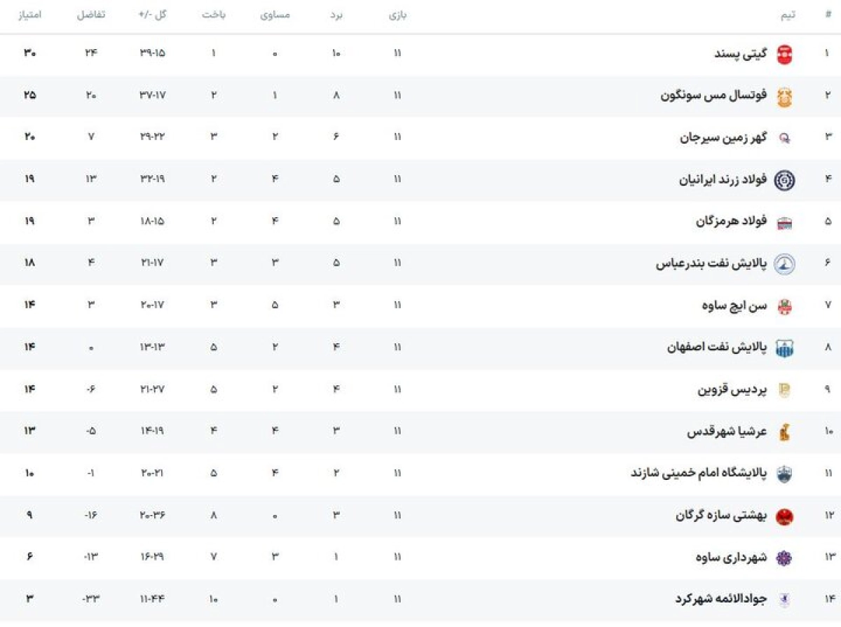 گیتی پسند اصفهان هم با این پیروزی، توانست به صدرنشینی خود در لیگ برتر فوتسال ادامه دهد. تیم گیتی پسند اصفهان تاکنون ۳۰ امتیاز کسب کرده است و در صدر جدول رده بندی لیگ برتر فوتسال قرار دارد.