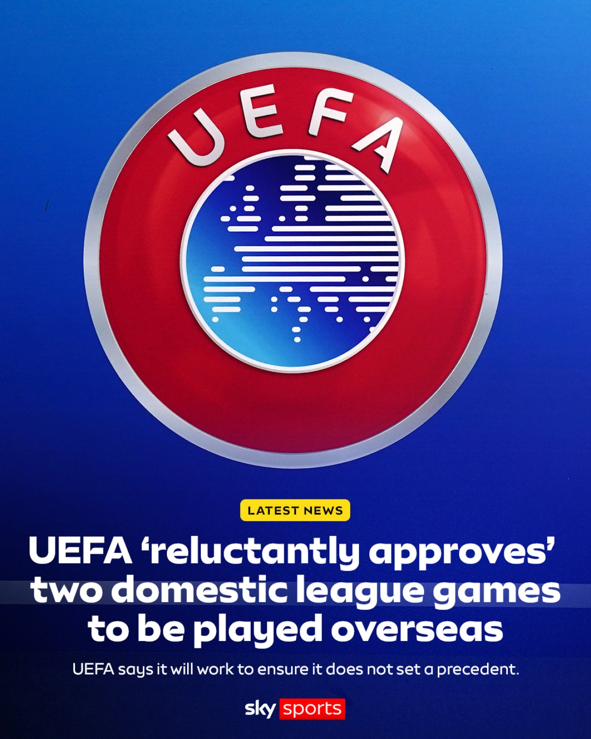 با این حال، یوفا تأکید کرده که این دو مورد استثناییاند. در بیانیهای آمده است: «یوفا مجدداً مخالفت خود را با برگزاری مسابقات داخلی لیگها در خارج از کشور ابراز میکند. پس از نشست کمیته اجرایی و مشورت با ذینفعان، روشن شد که اکثر طرفها، از جمله هواداران، سایر لیگها، باشگاهها و بازیکنان، با انتقال مسابقات داخلی به خارج مخالفت دارند. هرچند تصمیمگیری در این دو مورد به اجبار و به عنوان استثنا صورت گرفت. تعهد ما به حفظ انسجام لیگها و ارتباط باشگاهها با جامعه محلی است.»