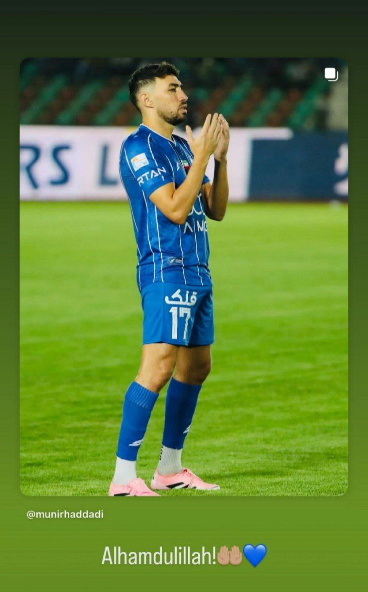 منیر الحدادی، که سابقه بازی در تیمهای مطرحی چون بارسلونا، والنسیا و سویا را در کارنامه دارد، پس از پایان بازی دیشب استقلال، با انتشار کلمه «الحمدلله» در استوری صفحه شخصی خود، به پیروزی آبیپوشان واکنش نشان داد. گفتنی است الحدادی در این بازی نمایش خوبی داشت و یکی از بازیکنان موثر استقلال مقابل رقیب کرمانی بود.
