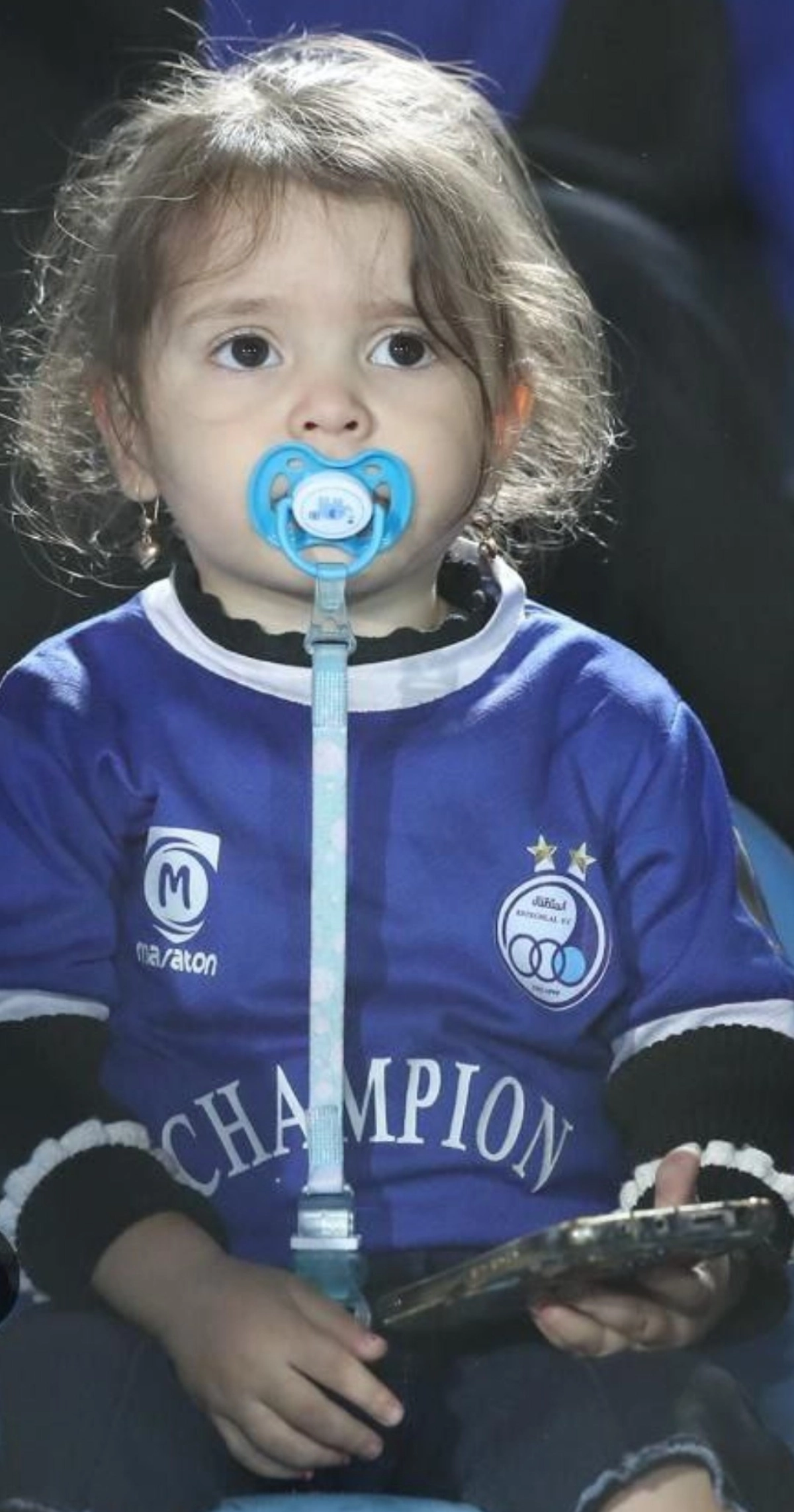 در بین هزاران هوادار پرشور استقلال، یک تماشاگر کوچولو دل همه را برد  دختربچه‌ای با پستونک در دهان و لباس استقلال بر تن!