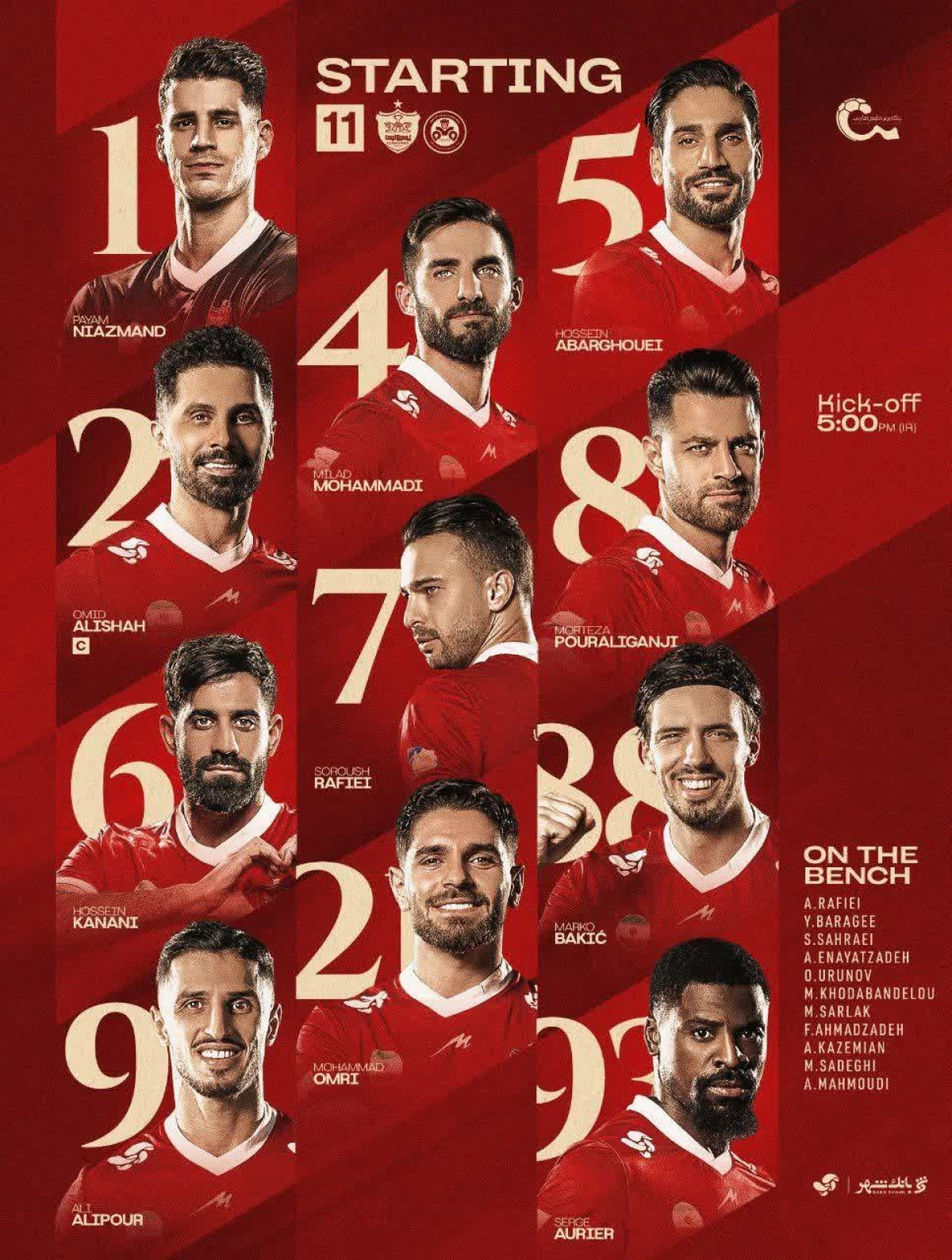 پیام نیازمند، حسین ابرقویی، مرتضی پورعلی‌گنجی، حسین کنعانی‌زادگان، میلاد محمدی، سرژ اوریه، مارکو باکیچ، سروش رفیعی، امید عالیشاه، محمد عمری و علی علیپور