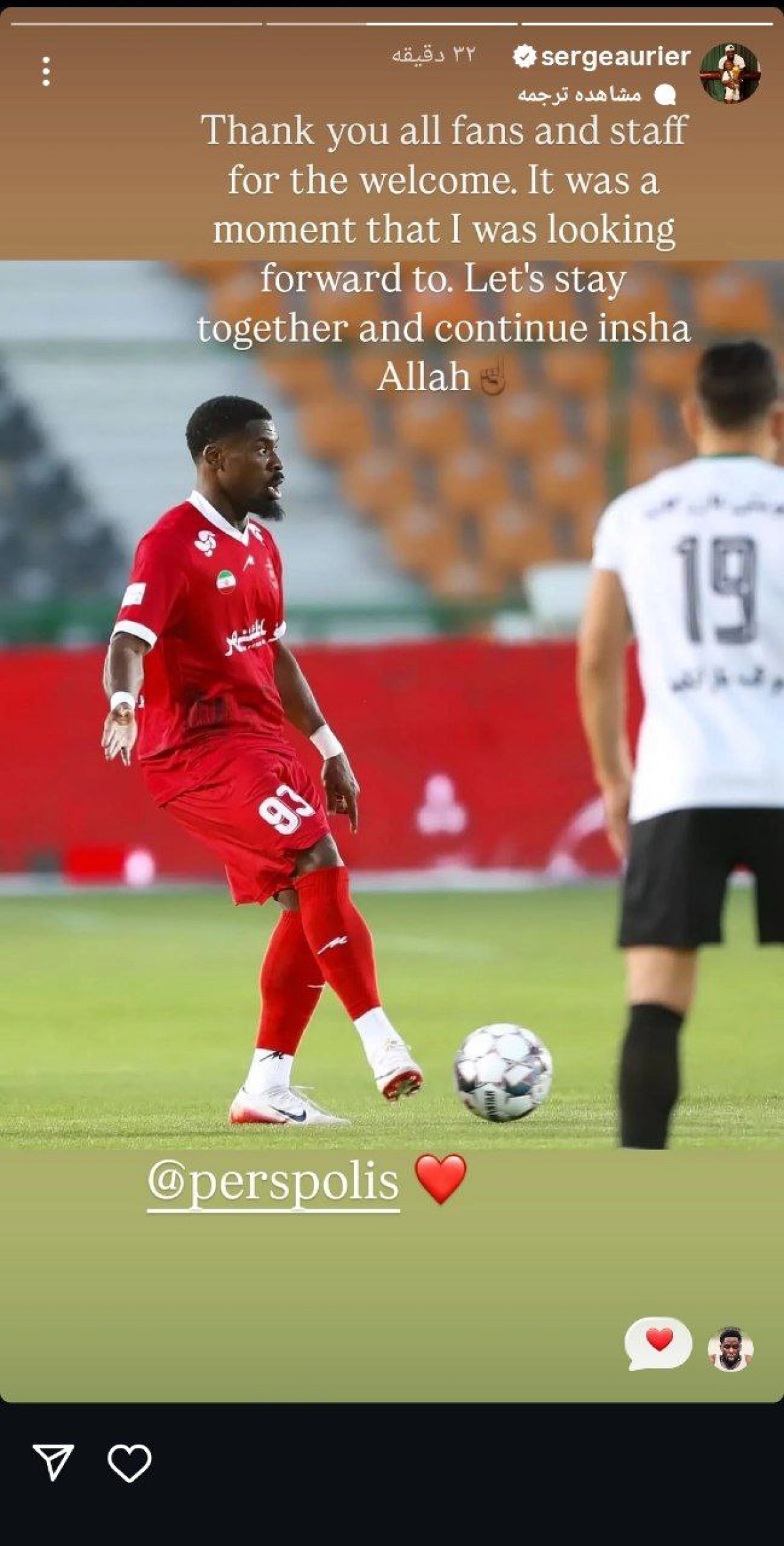 مدافع اهل ساحل عاج پرسپولیس یک استوری منتشر کرد.