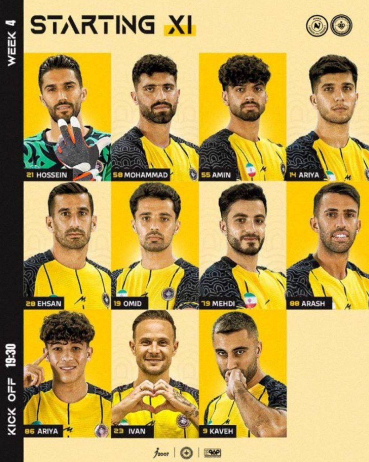 سیدحسین حسینی، آریا یوسفی، امید نورافکن، محمد دانشگر، محمدامین حزباوی، آرش رضاوند، احسان حاج‌صفی، محمدمهدی لطفی، ایوان سانچز، آریا شفیع‌دوست و کاوه رضایی