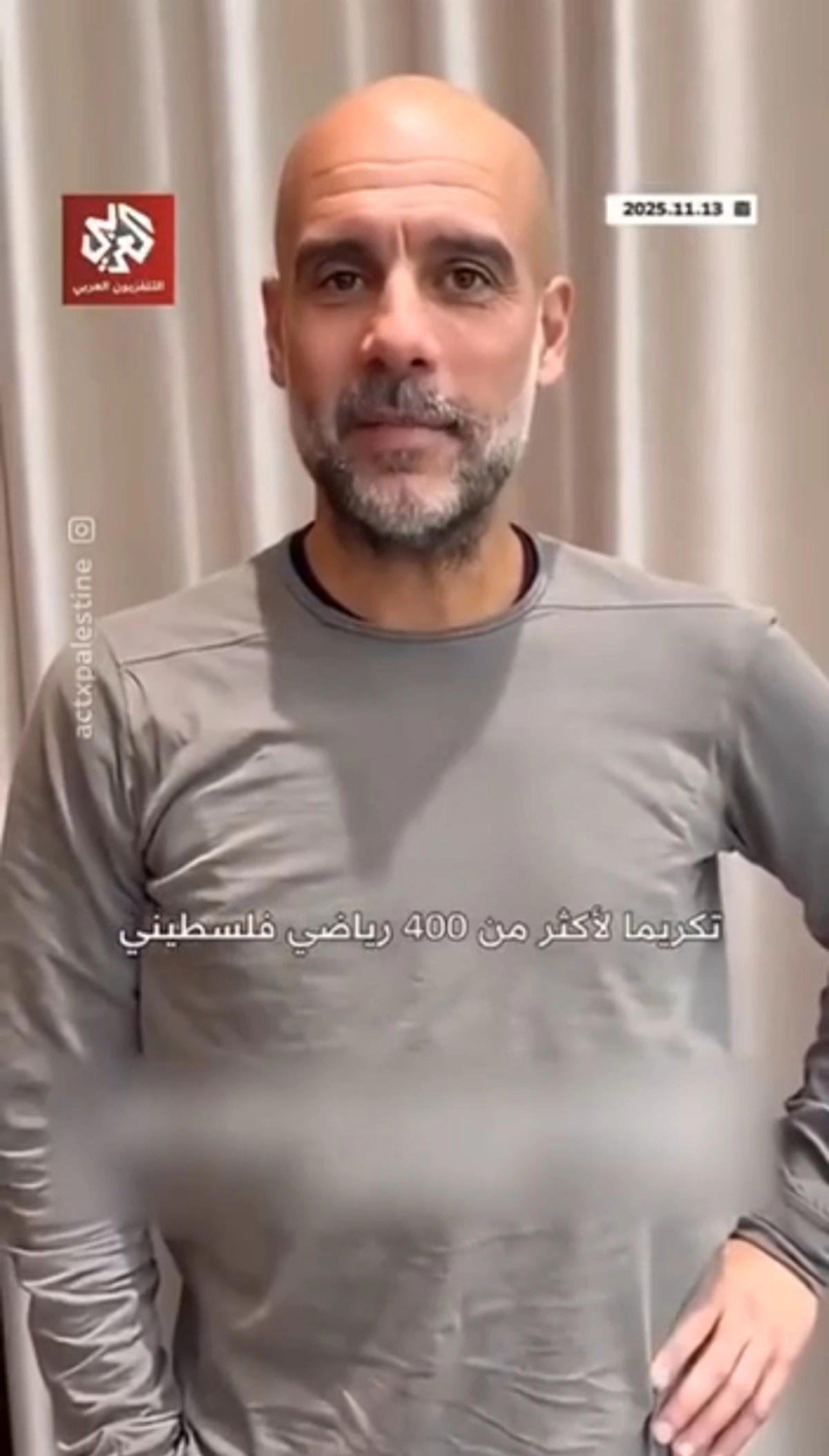 پپ گواردیولا، سرمربی مشهور منچسترسیتی، حمایت قاطع خود را از تیم ملی فلسطین اعلام کرد و از مردم کاتالونیا خواست تا در بازی خیریه این تیم با تیم منتخب کاتالونیا شرکت کنند.