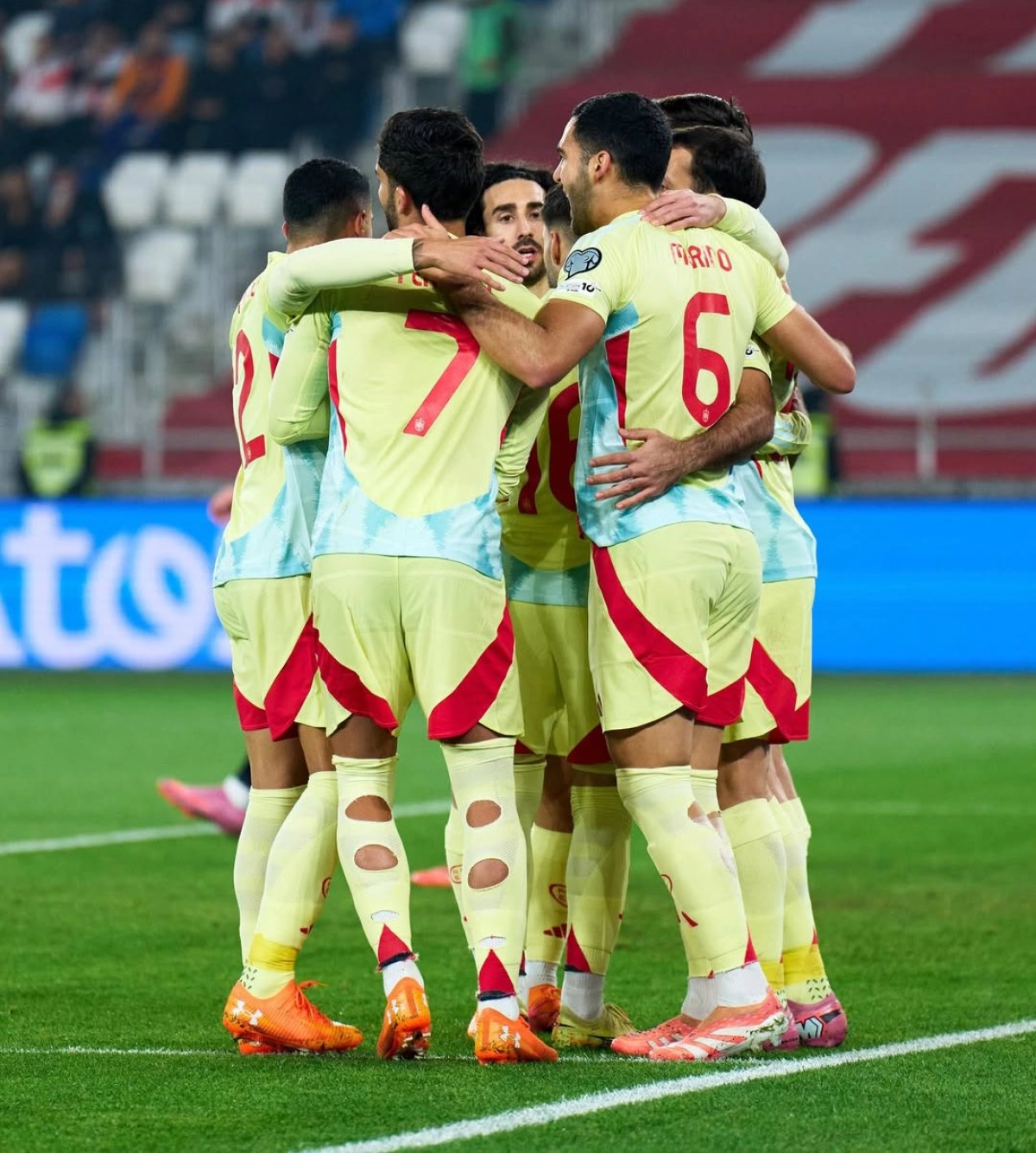 در دور پنجم مقدماتی جام جهانی ۲۰۲۶ در منطقه اروپا، اسپانیا صدرنشین گروه E برای قطعی کردن صعود خود به جام جهانی به مصاف گرجستان رفت و کار سختی برای پیروزی مقابل تیم میزبان نداشت. میکل اویارزابال، زوبیمندی و فران تورس با سه گل خود در نیمه اول، خیال اسپانیا را بابت پیروزی راحت کردند. در نیمه دوم هم گل چهارم توسط اویارزابال، برد اسپانیا را محکم‌تر کرد.