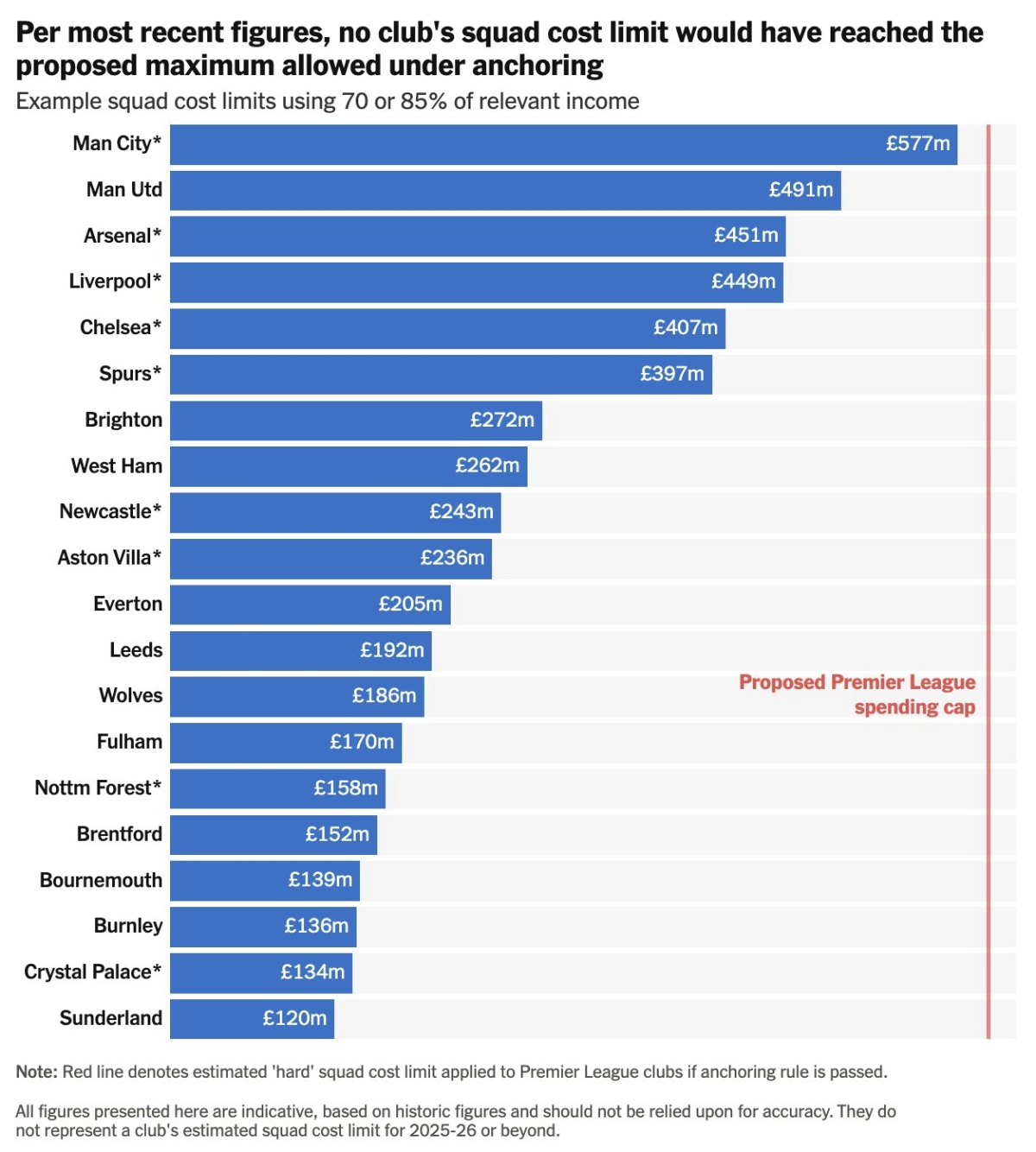 به گزارش سایت رسمی فوتبال برتر ؛ باشگاههای لیگ برتر انگلیس در جلسه اخیر خود، طرح بحثبرانگیز «سقف هزینهکرد» یا همان «لنگر مالی» را رد کردند؛ طرحی که قرار بود هزینهکرد باشگاههای متمول را به پنج برابر حق پخش تلویزیونی باشگاه قعرنشین محدود کند.