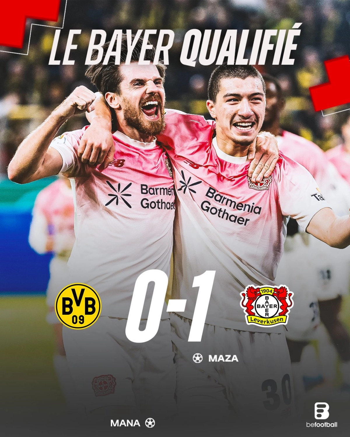 دورتموند که ابتدای هفته در بوندسلیگا لورکوزن را در خانه حریف از پیش رو برداشته بود، نتوانست در این بازی خانگی کاری از پیش ببرد و در روزی که تمام تلاشهایش به در بسته خورد، با تک گل ابراهیم مارا در دقیقه ۳۴ از جام حذفی آلمان کنار رفت تا کابوس یک فصل بدون جام دیگر، زنبورها را تهدید کند. دورتموند آخرین بار در سال ۲۰۲۱ به قهرمانی در جام حذفی آلمان رسیده بود.