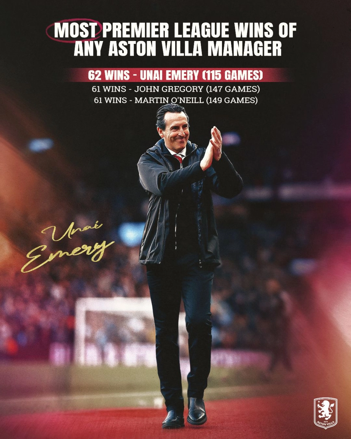 همچنین اونای امری حالا رکورددار بیشترین تعداد پیروزی در تاریخ حضور استون‌ویلا در لیگ برتر است؛ بیش از هر سرمربی دیگری در این باشگاه.