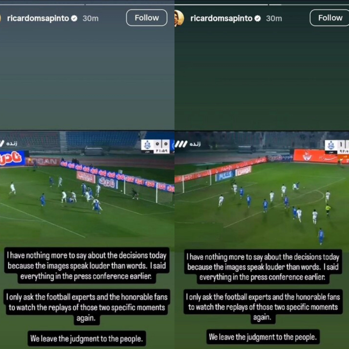 پس از پایان مسابقه، ریکاردو ساپینتو با انتشار ویدئویی از برخورد حردانی با بازیکن ملوان در صفحه مجازی خود، به تصمیم داور واکنش نشان داد. او در این پست نوشت: «دیگر چیزی برای گفتن درباره تصمیمهای امروز ندارم، چون تصاویر گویاتر از کلمات هستند. همهچیز را در نشست خبری قبلاً گفتهام. فقط از کارشناسان فوتبال و هواداران محترم میخواهم که بازپخش آن دو صحنه خاص را دوباره تماشا کنند. قضاوت را به مردم واگذار میکنیم.»