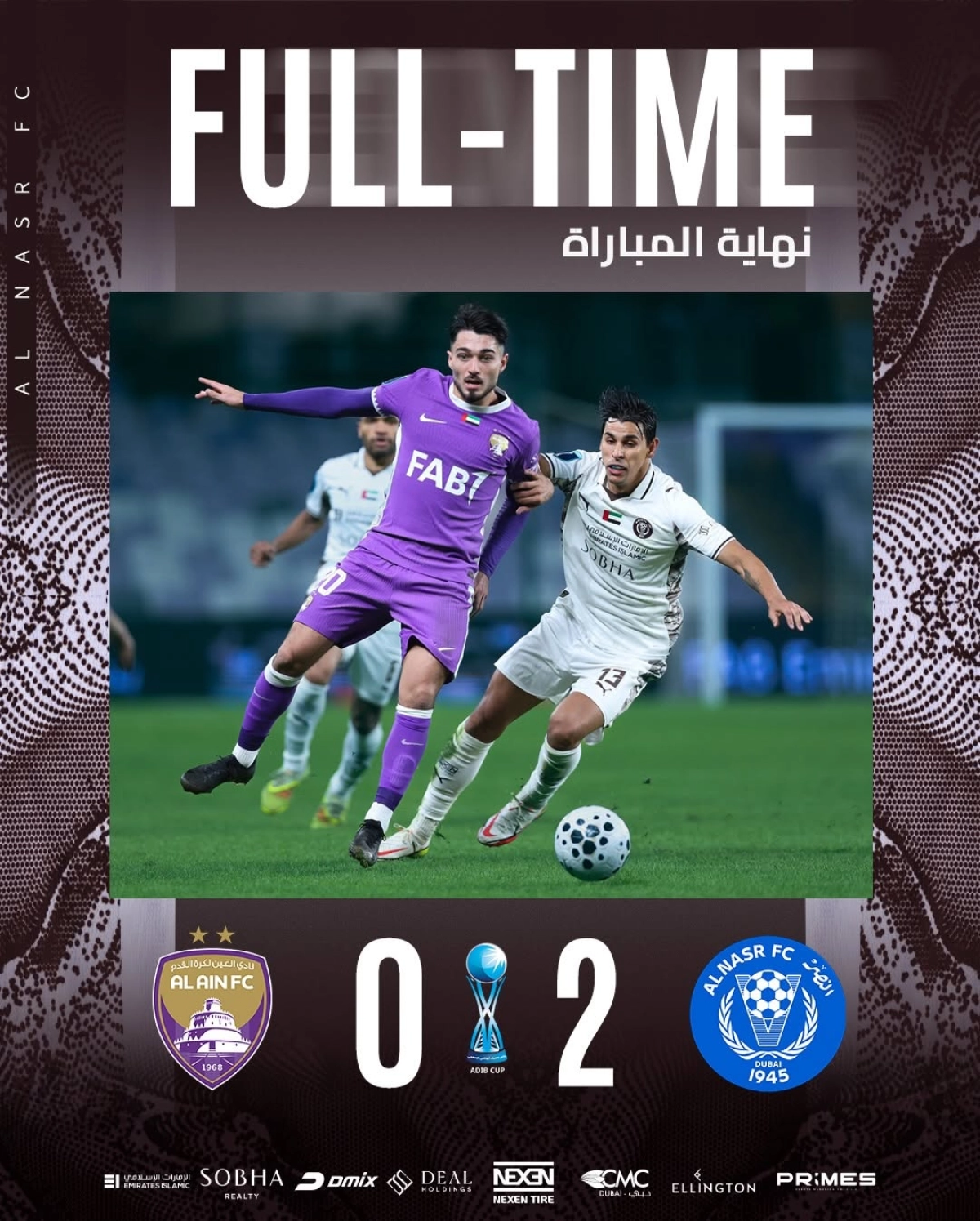 تیم فوتبال النصر با وجود پیروزی ۲ بر صفر در دیدار برگشت مقابل العین، به دلیل شکست ۳ بر صفر در بازی رفت، از صعود به فینال جام بانک اسلامی ابوظبی بازماند. مهدی قایدی، وینگر ایرانی النصر، در این مسابقه ۹۰ دقیقه در ترکیب اصلی تیمش حضور داشت اما نتوانست گلزنی کند.