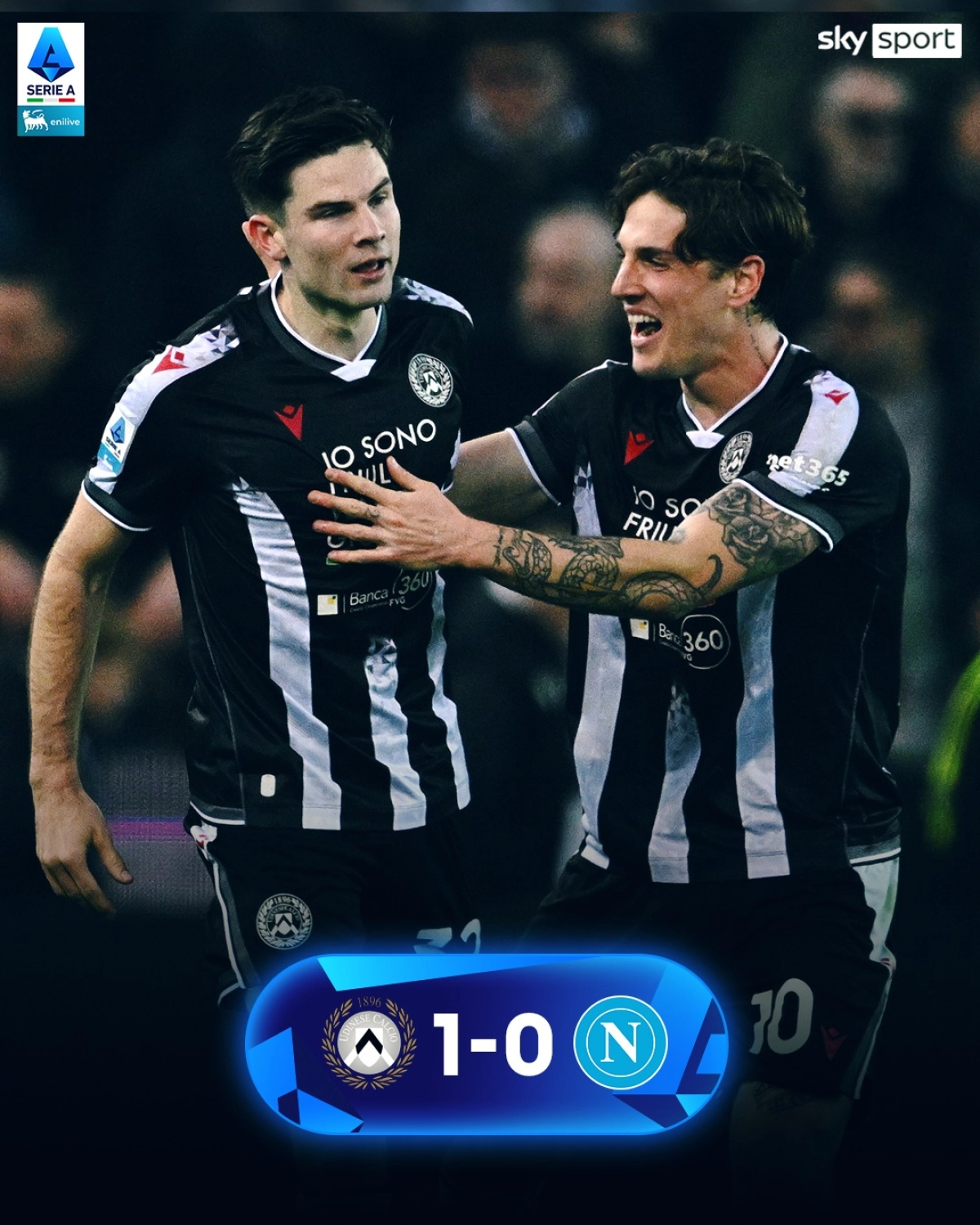 پس از توقف میلان مقابل ساسولو، ناپولی در هفته پانزدهم سری آ ایتالیا فرصت این را داشت تا با پیروزی مقابل اودینزه، به صدر جدول سری آ صعود کند اما در بازیای که حتی یک شوت در چارچوب هم در آن توسط بازیکنان ناپولی به ثبت نرسید، با یک گل مقابل اودینزه شکست خورد. اودینزه در نیمه دوم این بازی سه بار دروازه ناپولی را باز کرد اما دو گل این تیم پس از بازبینی صحنه مردود اعلام شدند. گل سالم این تیم توسط یورگن اکلنکامپ به ثمر رسید.