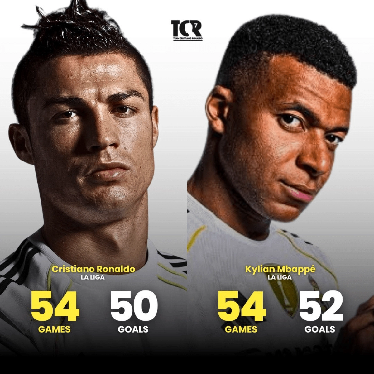 تا پیش از امباپه، هیچ بازیکنی در تاریخ باشگاه رئال مادرید نتوانسته بود از این رکورد کریستیانو سبقت بگیرد.