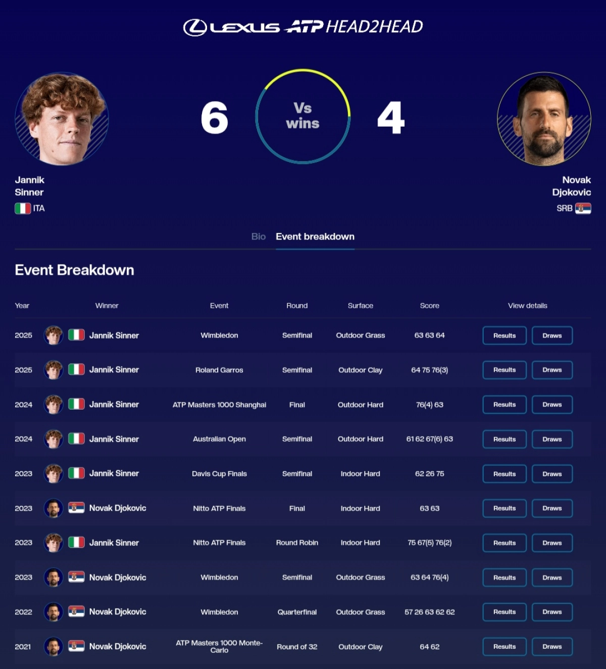 پس از آنکه جدال جذاب کارلوس آلکاراس و الکساندر زورف در مرحله نیمهنهایی گرنداسلم ملبورن استرالیا قطعی شد، حالا یانیک سینر و نواک جوکوویچ نیز رودرروی یکدیگر صفآرایی میکنند.