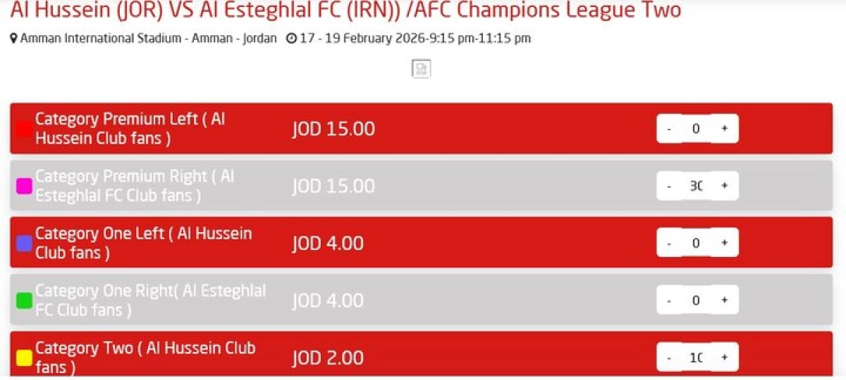 خبر مهم دیگر مربوط به هزینه حمایت هواداران در امان است. رسانه رسمی باشگاه الحسین اردن، جزئیات قیمت بلیتها را اعلام کرده است.