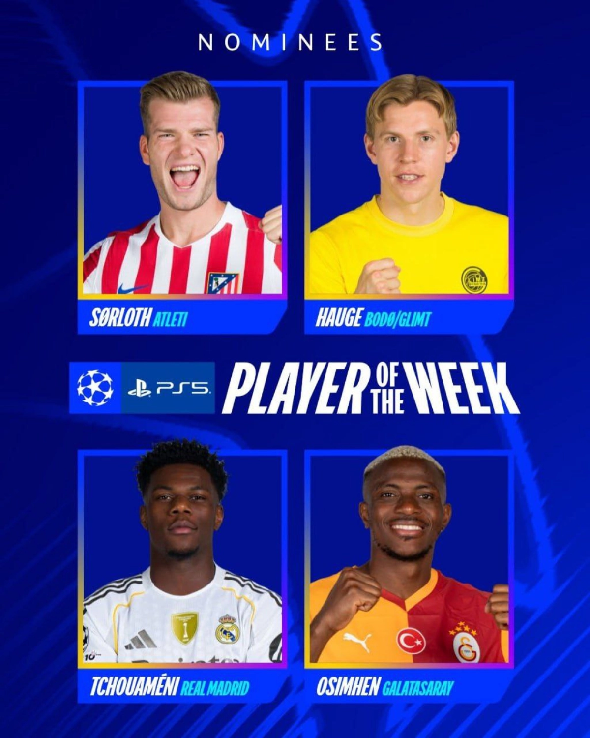 با پایان یافتن رقابتهای پرهیجان و سرنوشتساز دور برگشت مرحله پلیآف لیگ قهرمانان اروپا، اتحادیه فوتبال اروپا (یوفا) رسماً اسامی چهار نامزد نهایی برای کسب عنوان «بهترین بازیکن هفته» را اعلام کرد.